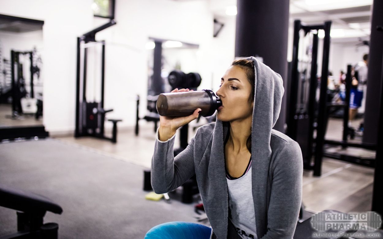Женщина пьет спортивное питание