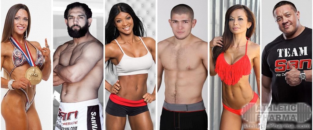 Компания может похвастаться внушительным составом представителей. В команду, как ее назвали сами SAN, входят многие гранды. Это и наши профи – Михаил Кокляев, Оксана Гришина, Хабиб Нурмагомедов, и зарубежные мастера – Джони Хендрикс по прозвищу “Бигг Ригг”, Ной Александр (IFBB Pro Bikini), Кэндис Льюис (IFBB Pro Figure).