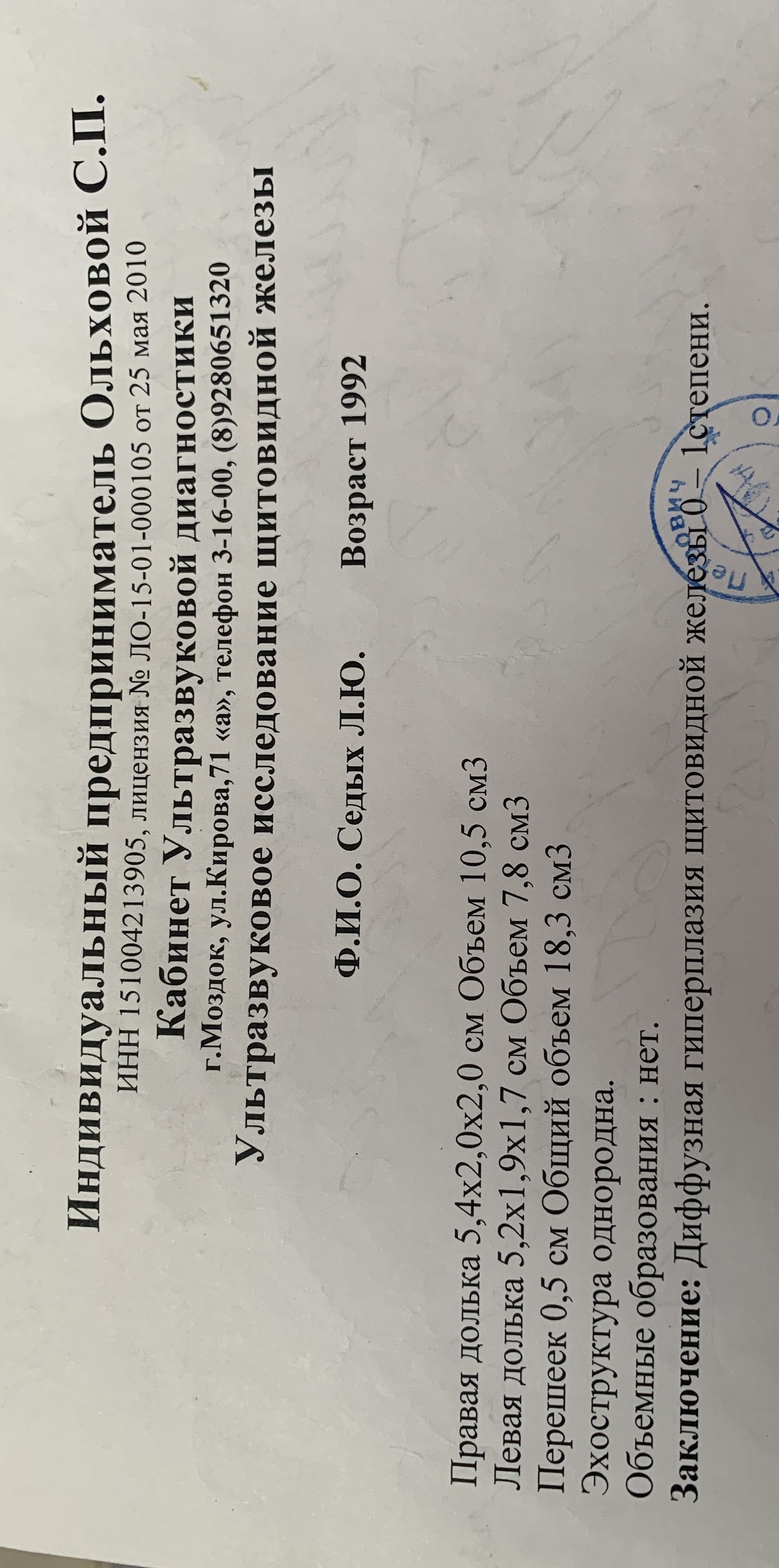 @Лиля Я сейчас глянула УЗИ ещё раз, а нету предыдущего, которое сдавали до него? Не сохранилось нигде? Хотела бы посмотреть динамику по гиперплазии, есть ли улучшения от йодотерапии. И также обязательно сдайте Т3 свободный и Т4 свободный, как я выше писала.