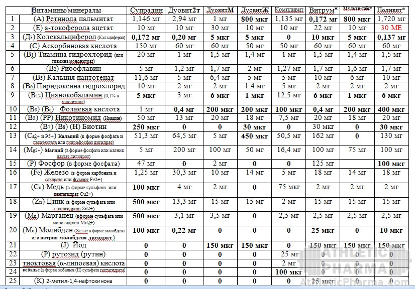 Витамины сравнение1