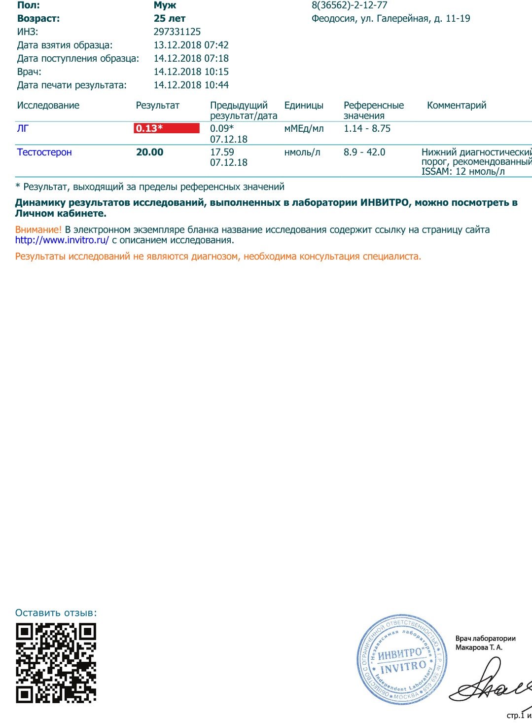 Был курс 10 недель 500 энантата и 300 деки. 3 последние недели выходил на пропионате и фенилпропионате. После последней иньекции подождал неделю и начал пкт кломифеном, через 2недели пкт сдал анализы тест и лг , подумал что фонит ещё тест. Через ещё одну неделю сдал снова, тест поднялся и лг так и стоит на 0. Это так фонит тест или я что то не понимаю?