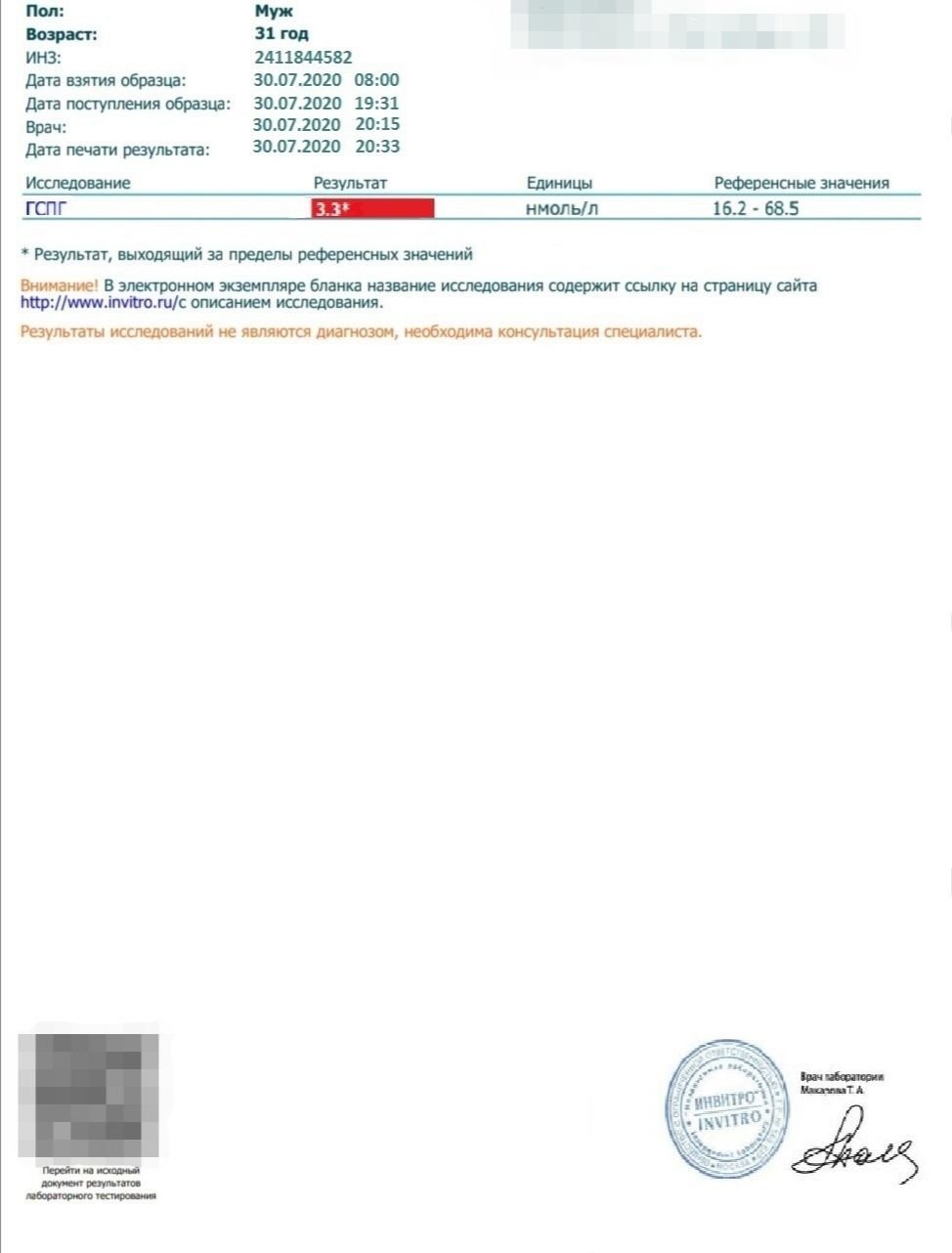 Анализ сдал ровно через 8 часов после инжекта.