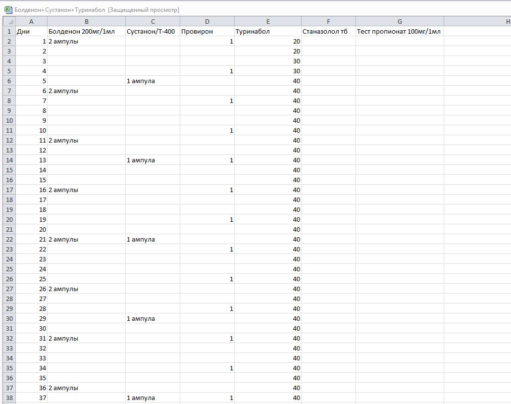 • несколько курсов из деки, суста, анабола, пропианата и ПКТ конечно, точно курсы не помню