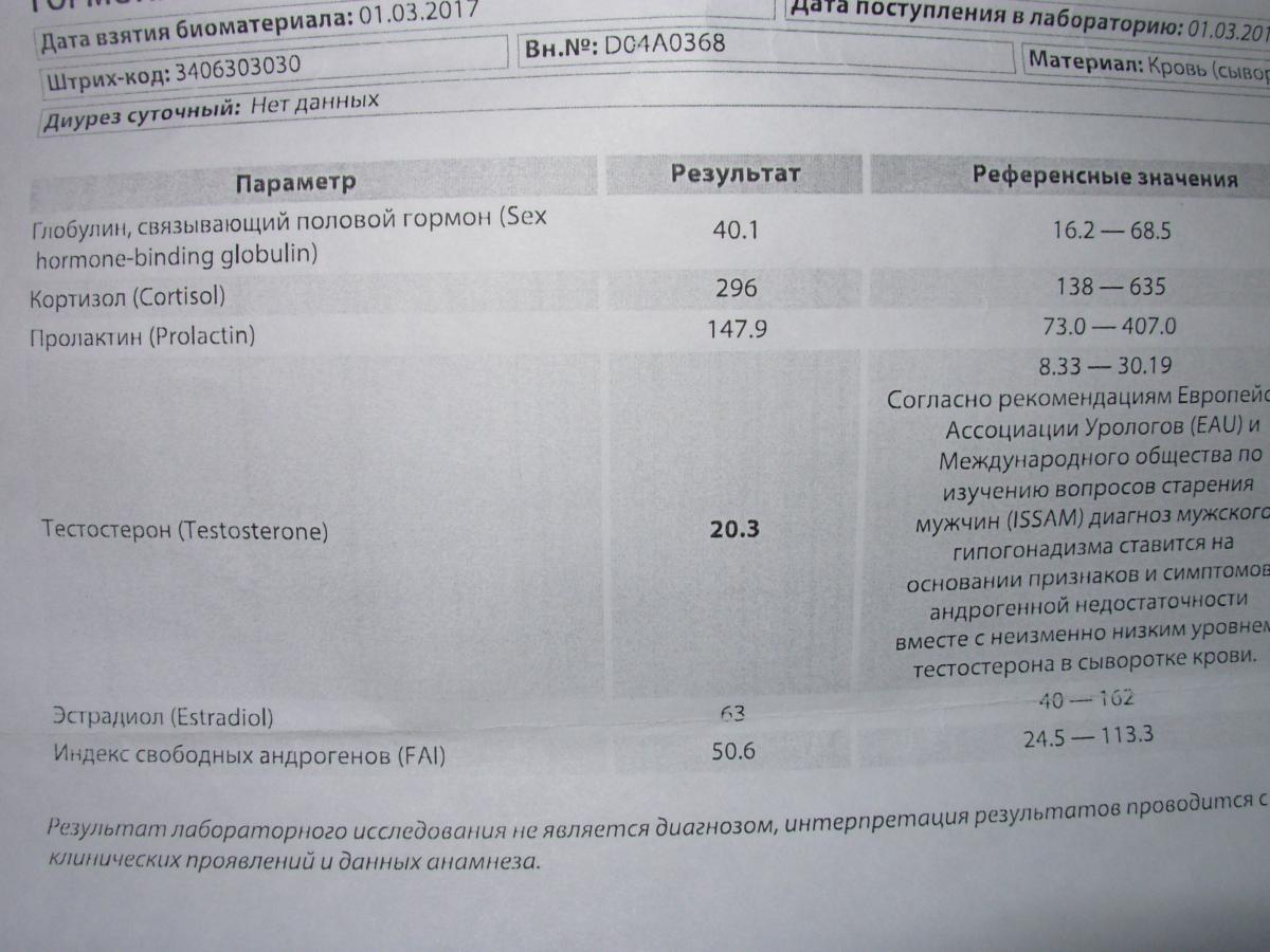 • Желательно иметь результаты анализов на половые гормоны(тестостерон общий\свободный, эстрадиол, пролактин, кортизол, ФСГ, ЛГ, ГСПГ...)