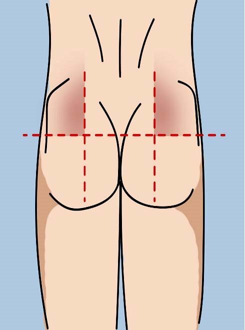Выше 2 фотографии указывают на места укола для ягодиц.