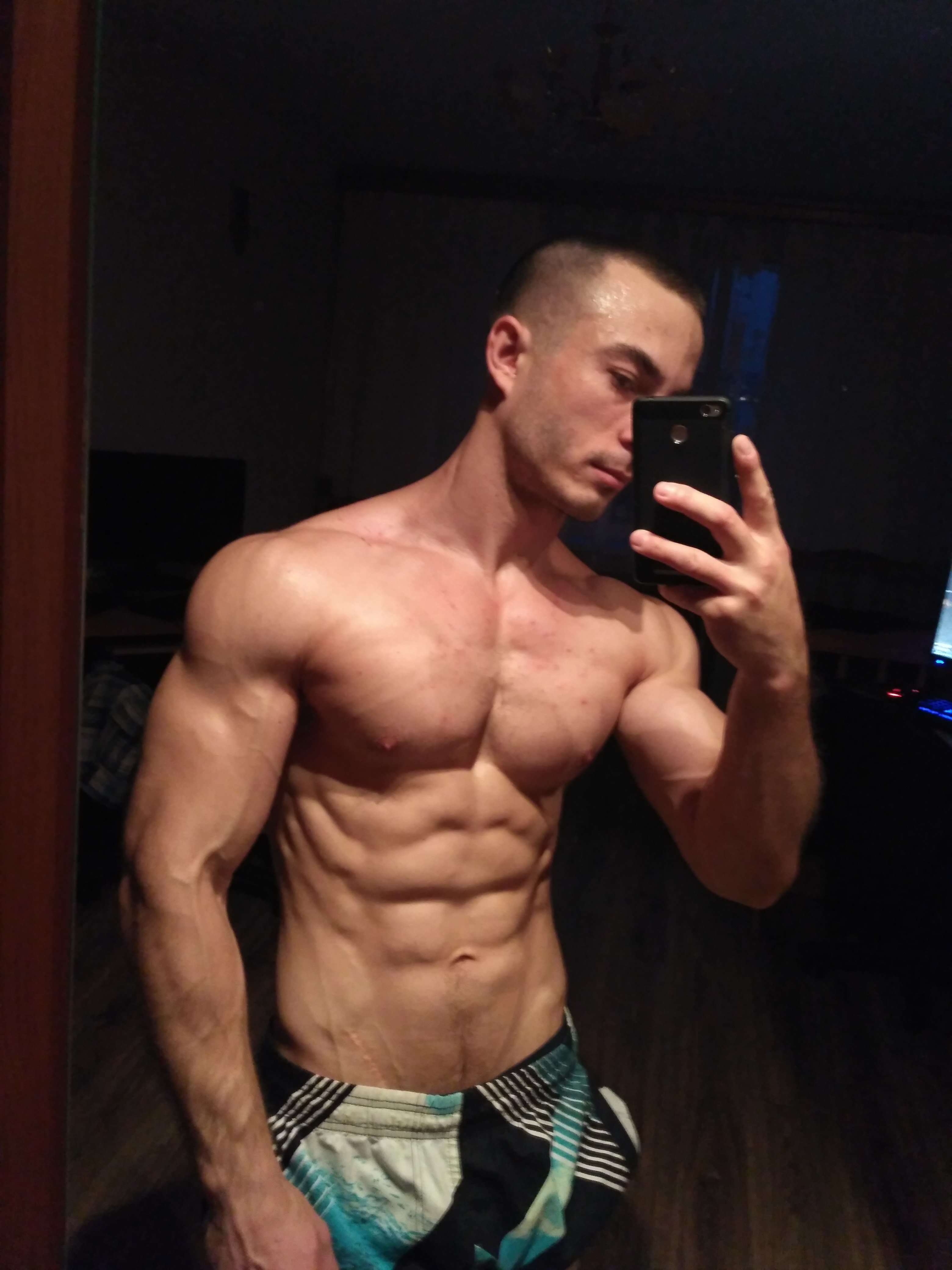 Вот фото на пике. Набрал 8 кг. С 62 до 70. Сейчас слил 4 кг. Так как нет возможности нормально тренить и питаться. В силу сложившихся обстоятельств.