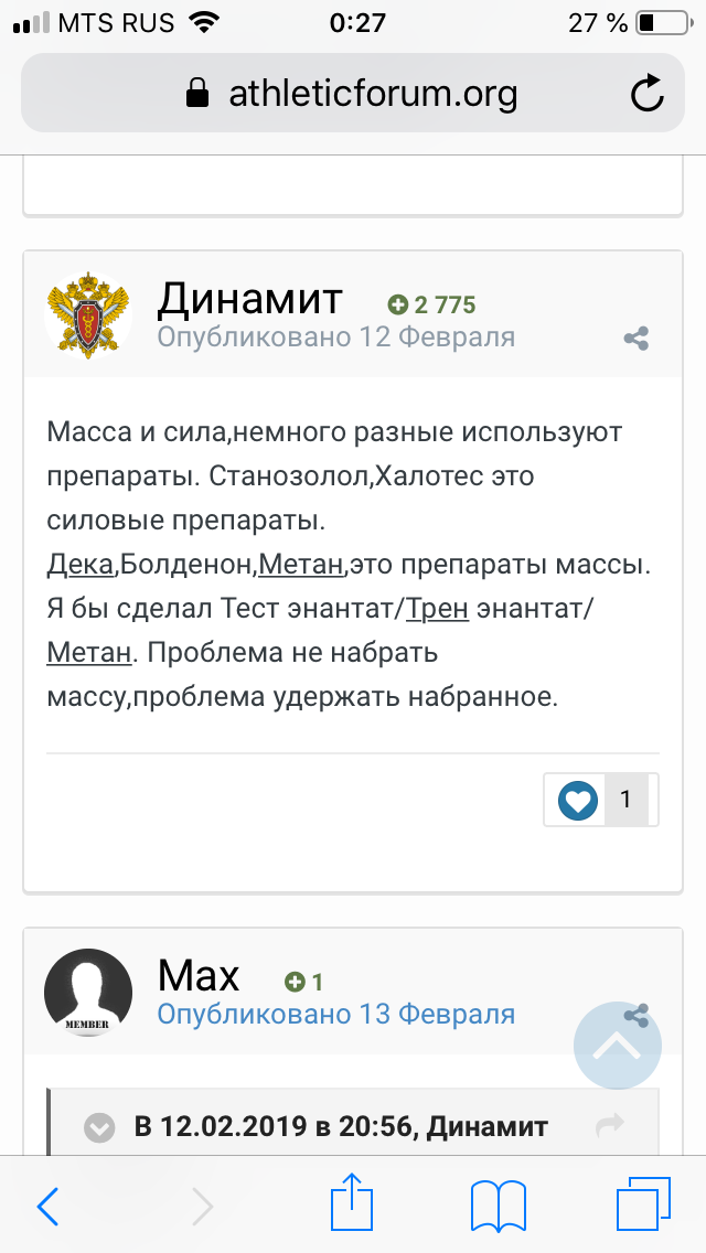 Понятно и про профицит и про дефицит. Подскажи тогда пожалуйста что посоветуешь для сухой массы. Только не болду, я её вообще не чувствую и не винстрол, в своё время пересушился им и плечо на больших весах сорвал, лет эдак 15-17 назад. Кстати лет эдак в 26-27 я закурсил на испанском винстррле через день по ампуле 40 дней и 50 млг анабола тайского ( сейчас и близко такого анабола-метана нет на Российском рынке как и стапого испанского винстрола) - итог 10 кг за полтора месяца и в качестве.....понятное дело не профессиональное качество, но было прикольно ))) года 3-4 не курсил и чго то подзабыл всё, а бриллиантовый курс не хочу - разнесёт-это под зиму надо делать, а не под лето