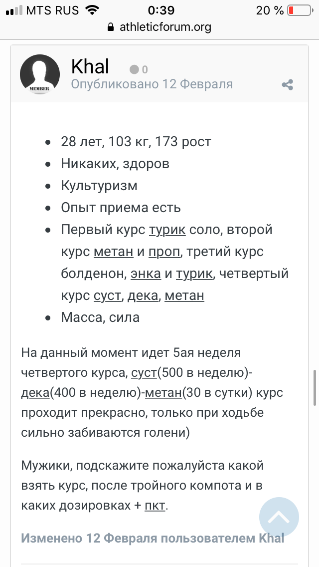 Всем привет. Посоветуйте: омка аптечная, данабол и тамокс 2 года просрочки - можно употребить или криминально ? Или вообще пустышка получится и я время про трачу ? Посоветуйте рабочий суст кто юзал. Хочу суст с мая сочетать с параболаном балкановским (говорят он самый лучший, но на этом сайте и самый дорогой(((. Суст 500 и парабалан 250-300 на 8 недель хватит ? Не нужен третий препарат ? Цель подсушиться и набрать сухой массы на лето )) ну и есть кг 7 лишнего веса. Заранее Всем спасибо !