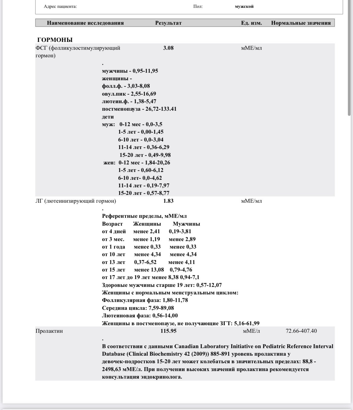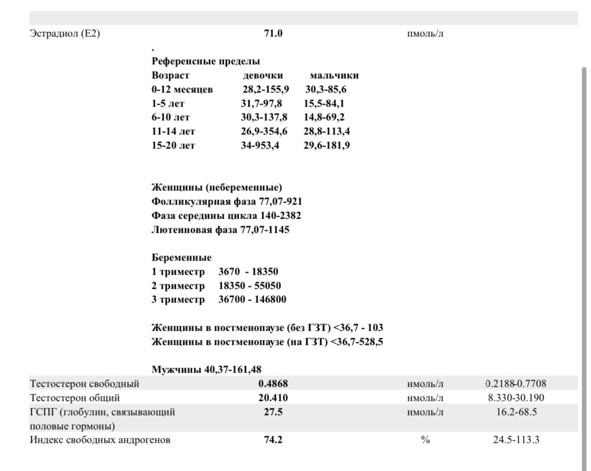 • Желательно иметь результаты анализов на половые гормоны(тестостерон общий\свободный, эстрадиол, пролактин, кортизол, ФСГ, ЛГ, ГСПГ...)