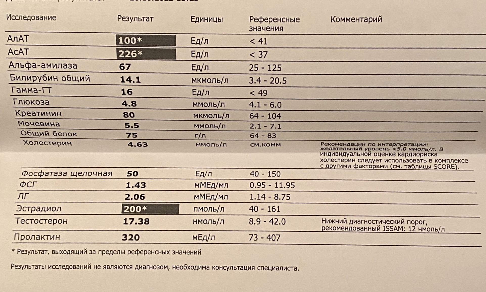 @Nik_00 как ты сам видишь из анализов, у тебя есть явные проблемы со здоровьем, а точнее с печенью. Поэтому, разумнее будет решить эти проблемы перед тем как начинать курс. Потому что на курсе это всё может очень сильно усугубиться. Запишись к терапевту, пусть он тебе выпишет направление к гастроэнтерологу или гепатологу. И вместе с врачом приводи своё здоровье в порядок. И уже после того, как твои анализы придут в норму,  можно будет корректировать твой курс.