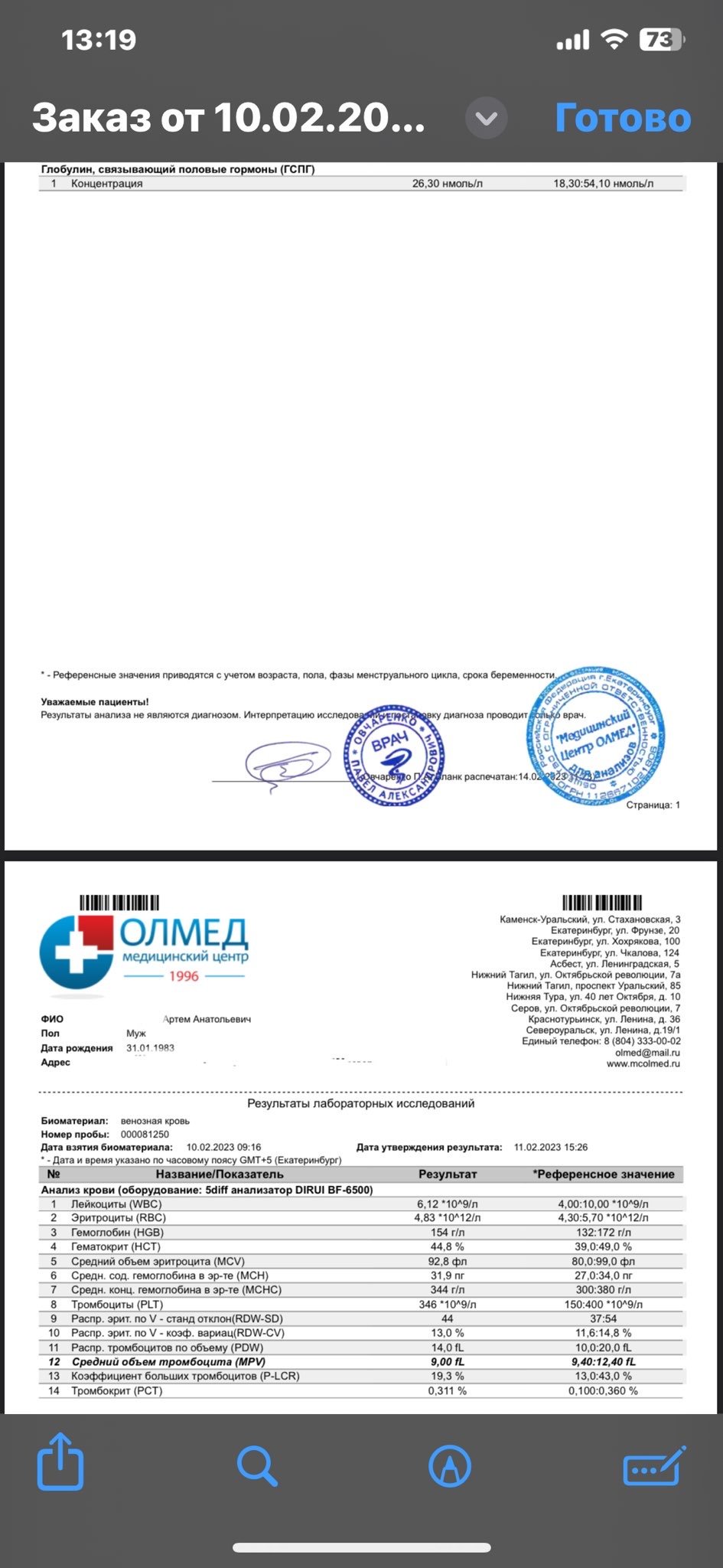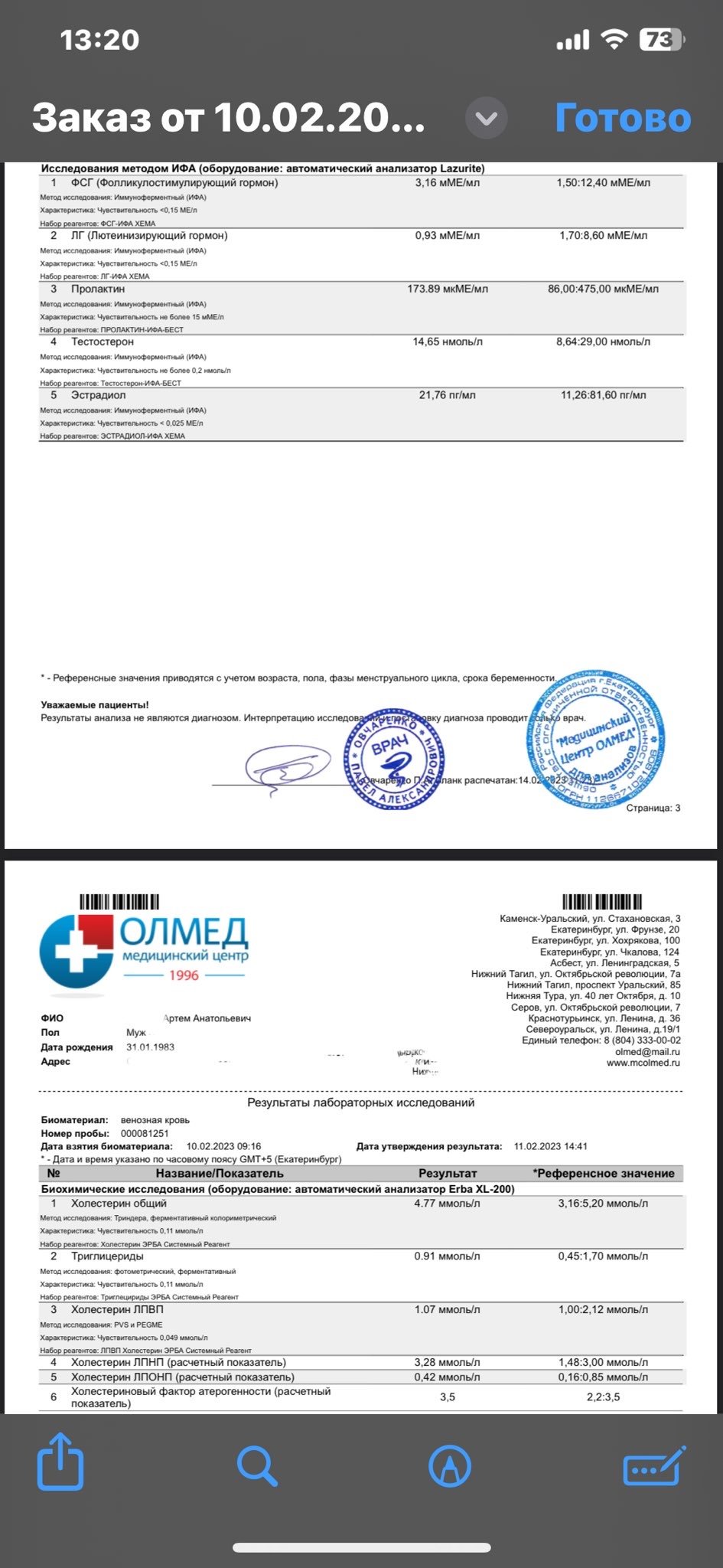 • Анализы гормонов: тестостерон общий\свободный, ЛГ, ФСГ, ГСПГ, эстрадиол, пролактин.