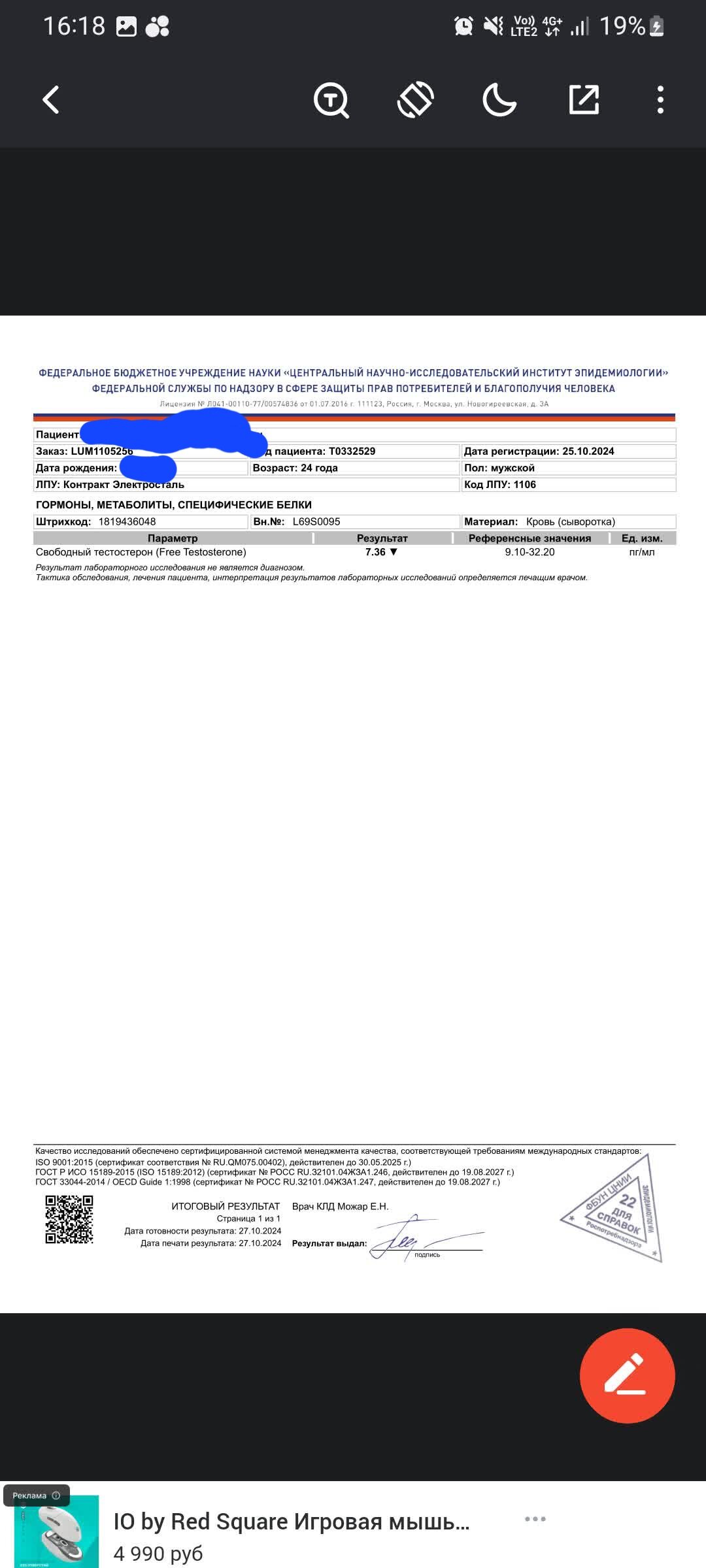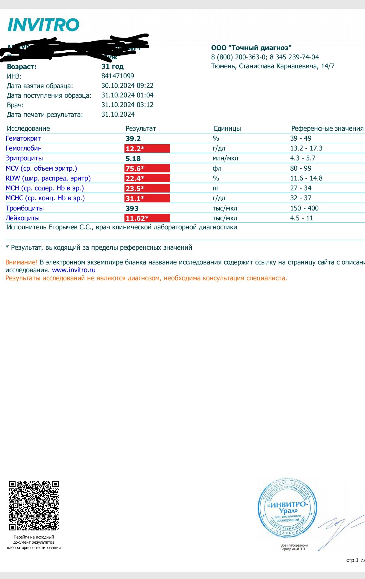 Остальные результаты анализов нормально да брат