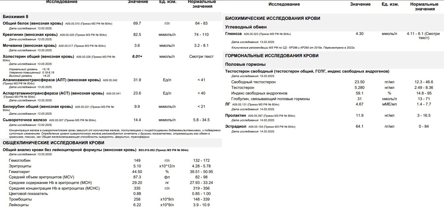 @Dragon добрый день. Прошло две недели курса, сдал анализы и ниже прикрепляю результаты. Скажи, что то будем корректировать или дополнительно принимать? Следующие анализы через сколько сдавать?