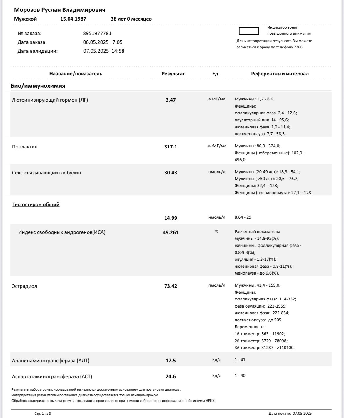 Последние два по анализам, обязательно