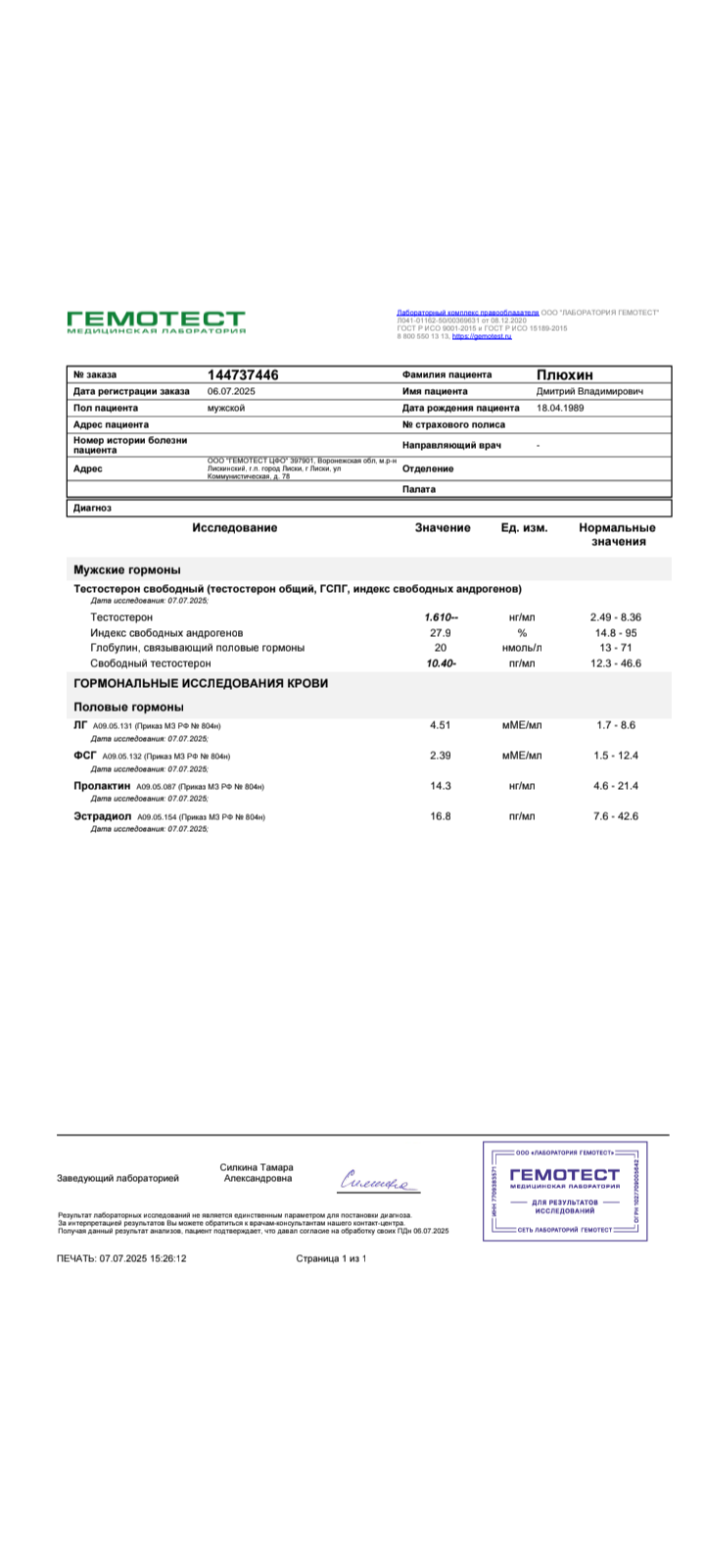 Сдал анализы через 2недели после начала курса: