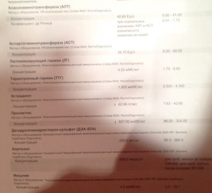 Сдавал данные анализы по совету эндокринолога в связи с трехлетними высыпаниями на лице и спине. Из анализов видно, что у меня сильно завышены уровень пролактина и эстрадиола. Это могло быть связано с проблемами с гипофизом, но МРТ дал отрицательный результат. Специалист посоветовал пропить несколько курсов достинекса. Анализы трехдневной давности: пролактин 487.80, тестостерон 16.320