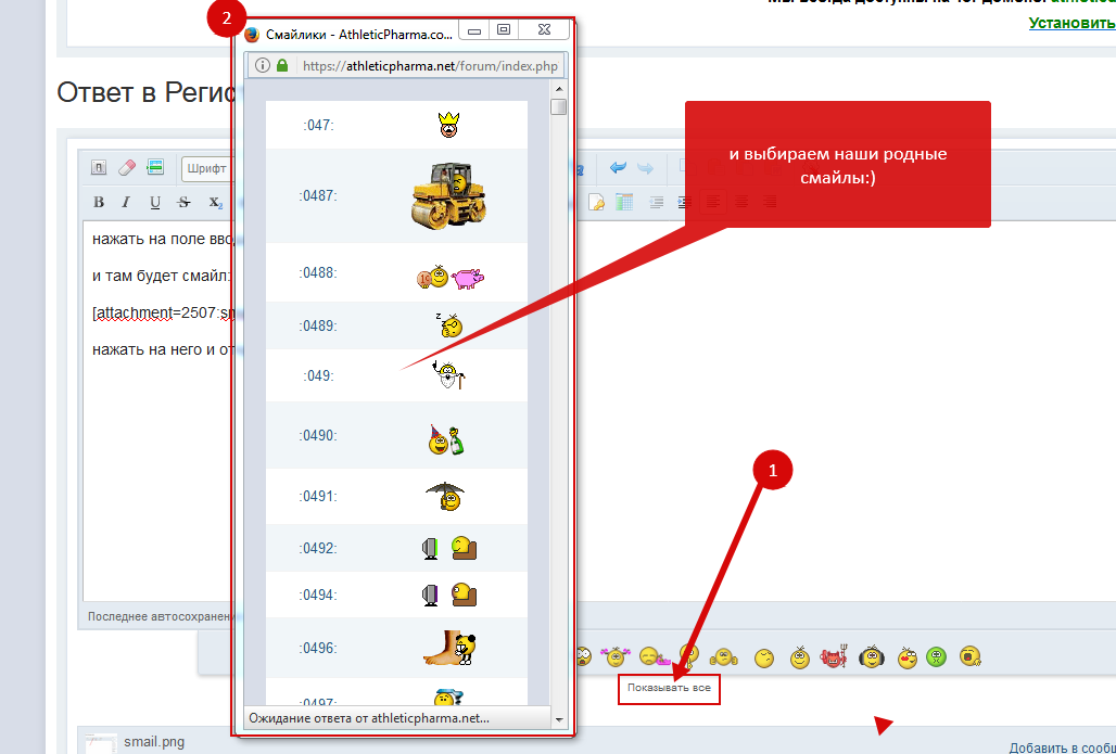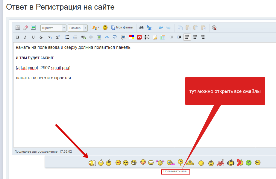 Но я чет привык уже давно и как-то этим не заморачивался. Всегда в сообщения на форум добавлял смайлики их буквенными обозначениями, где " : a g : " (убрать пробелы и кавычки) будет выглядеть как :ag: