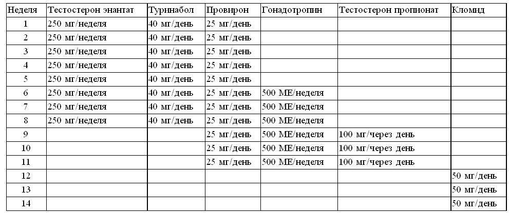 1-6 недели Туринабол по 40 мг в сутки, разделенный на 2 приема.