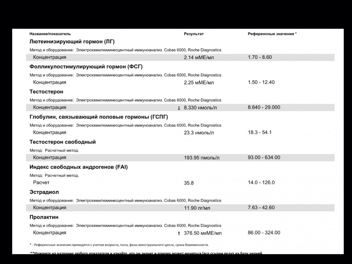 На шестой неделе курса дианабол (GD) 40мг/день+Андропен 300мг 2 раза в неделю(1,1 мл от BD с кодами)+провирон с 3 недели по 50мг/день сдал анализы: