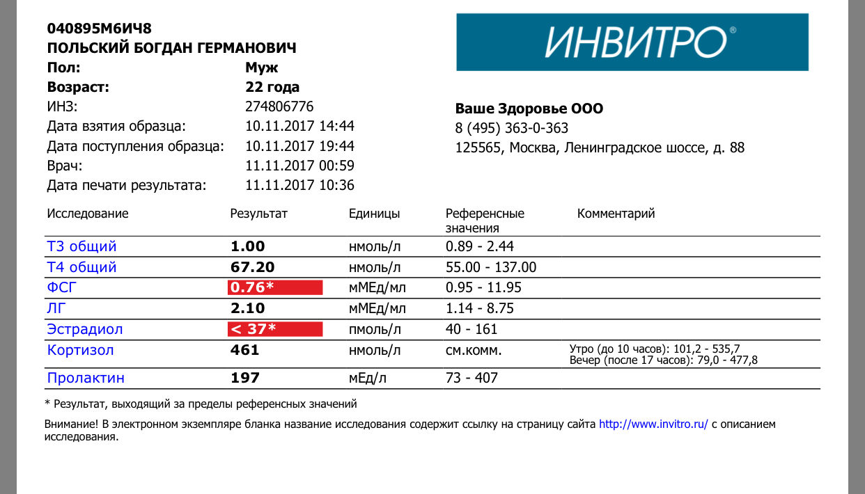 Ещё 4-5 дней пил сатан, ничего не менялось, все остановил. На пкт (опять же по советам любителей) оставил кламид по 50мг в день пропил 4 дня. Обратился к знающим сказали сдать анализы так как что я творю это непостижимо уму, сдал, анализы будут на фото. Главный вопрос. Как провести мне пкт чтоб скорее все восстановить, так как я сижу дома уже неделю и такое чувство что у меня депрессия.