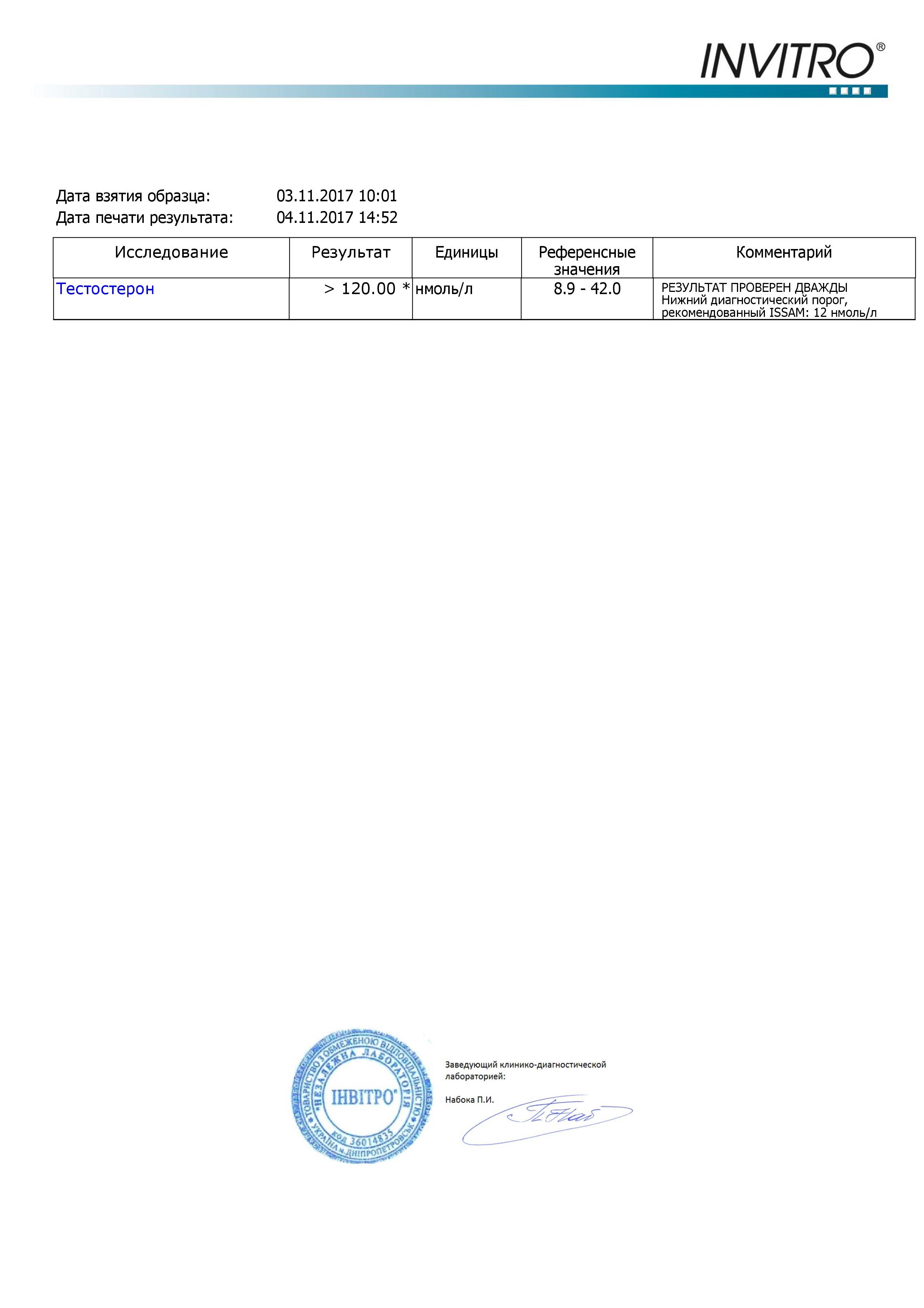 ПКТ нет, так как уровень теста выше нормы после курса, как ни странно. И нагрузку не снижает, всё время сидим на этих весах 330-360. И получается, что к концу курса провал, а как только он заканчивается, веса начинают расти. Связывали это с высоким уровнем теста, так мне казалось, но были курсы вообще без теста, результат тот же. Какие анализы нужно сдать, чтобы проследить зависимость? Допустим, сдать на 7-й неделе, когда спад и через две-три недели, когда подъем. Сдавали просто тестостерон общий через две недели после курса, он был равен 120нмоль/л, при норме 8,9-42!! Во вложении результат анализа.