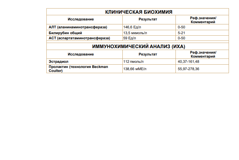 Анализы до курса: Эстрадиол, Пролактина, ФСГ, ЛГ, Тестостерон