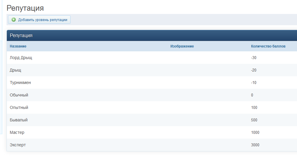 В репутации увеличил уровни, потому что часто плюсы ставят ни за что(за сиськи или просто хорошую шутку). Убрал некоторые уровни репутации.