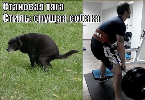 Получается есть стили становой тяги такие как сумо, румынская, мертвая тяга, тяга в раме, теперь еще один добавился "срущая собака"))).