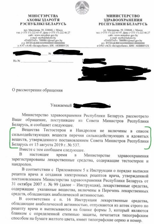 Кто знает Тестостерон и Нандролон запрещены на территории РБ?
