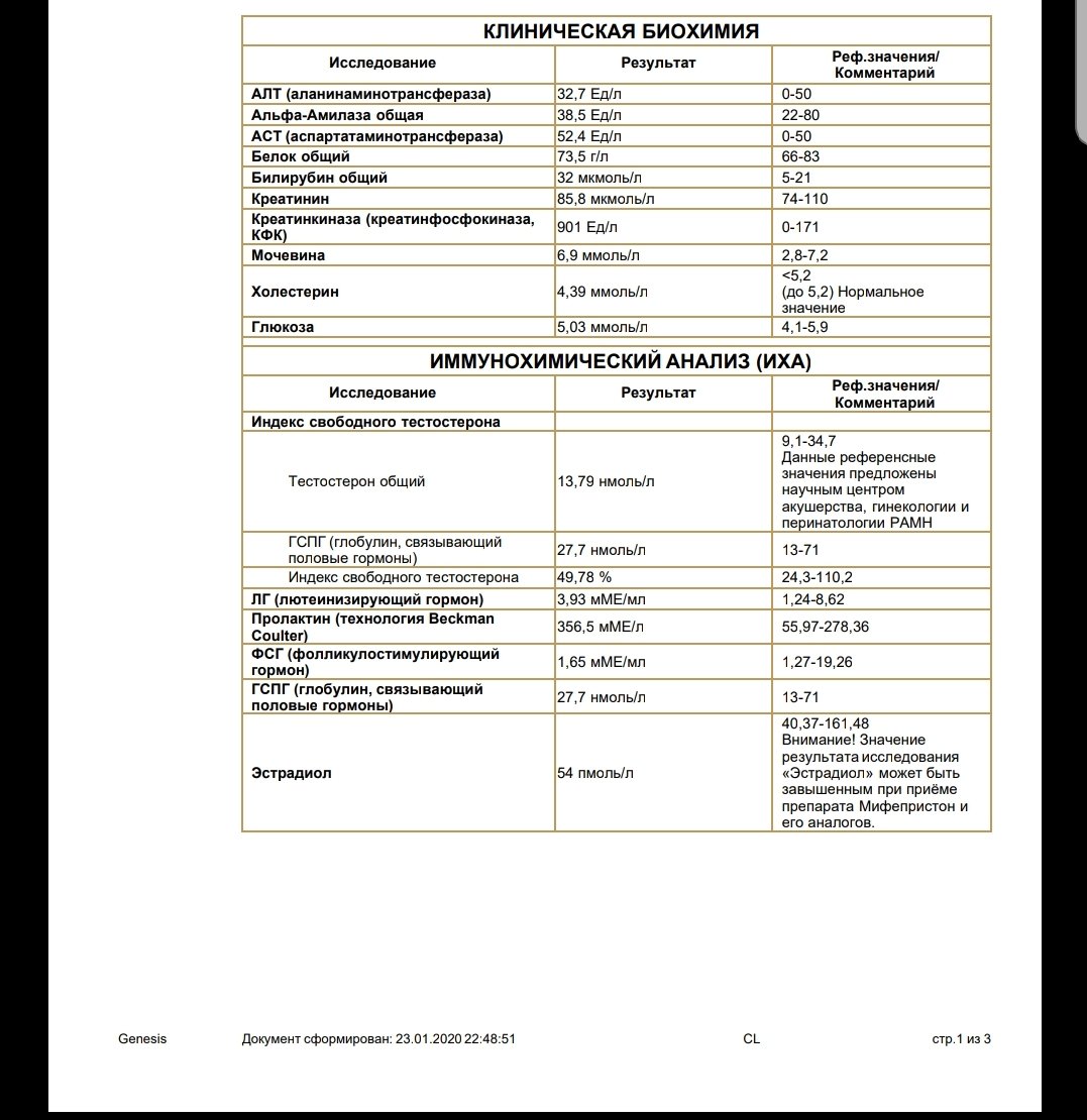 КФК высокий не из за тренировок,так как не тренируюсь вообще. До приёма Акнекутана КФК был в реф значениях. А с гормонами,да,неувязки тоже. Я затем их и сдал,так как либидо упало резко под конец приема препарата, ну это уже другая история. Я так понял Акнекутан лечит угри путём подавления выработки собственного тестостерона. Только об этом ни слова в инструкции, хотя на форумах типы тоже упоминали об этой проблеме. С гормонами тоже обращался к эндокринологу.  Он прописывал мне кломифен/анастразол, коберголин. Пил 6 недель. Вроде стало пободрей, но после отмены через пару недель снова либидо сошло на нет.