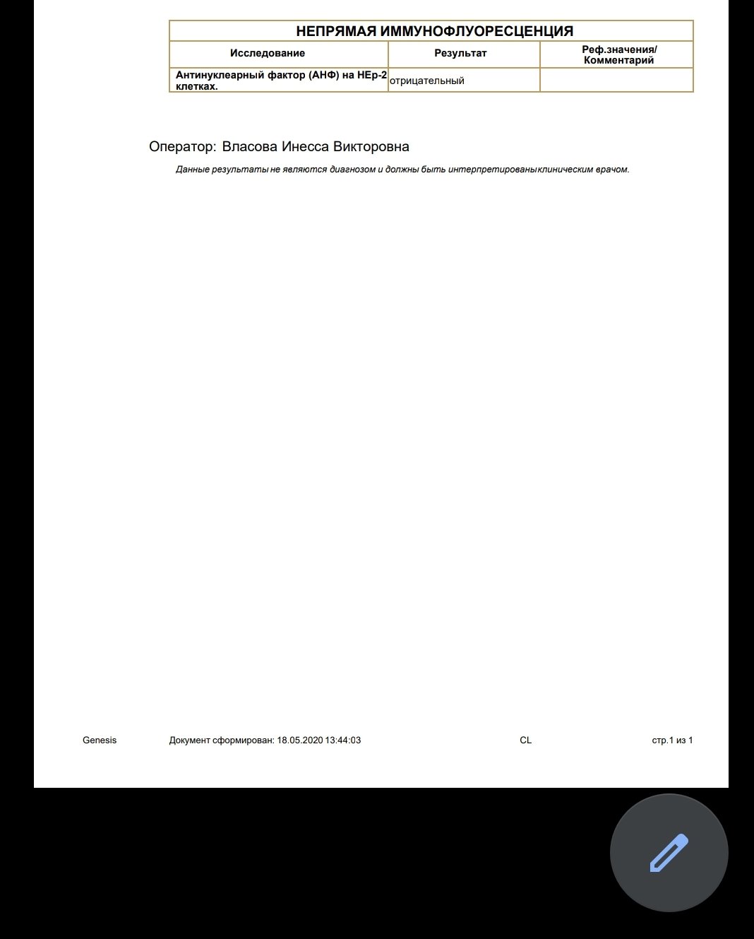 Единственное что схожу к ревматологу после готовности назначенного им результата антинуклеарного фактора, если результат будет вне реф значениях.