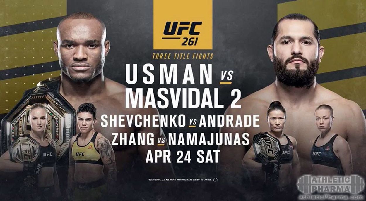 На видео Уайт сообщил, что турнир UFC 261 пройдет без ограничений по количеству зрителей. Также на мероприятии состоится сразу три титульных боя. Во-первых, в главном поединке мейн-карда Камару Усман проведет защиту титула против Хорхе Масвидаля. Это будет сражение за пояс в полусреднем весе. Во-вторых, действующая чемпионка в минимальной весовой категории среди женщин китаянка Вейли Чжан сразится с американкой Роуз Намаюнас. В-третьих, чемпионка в наилегчайшем весе среди женщин Валентина Шевченко померится силами с Джессикой Андраде.