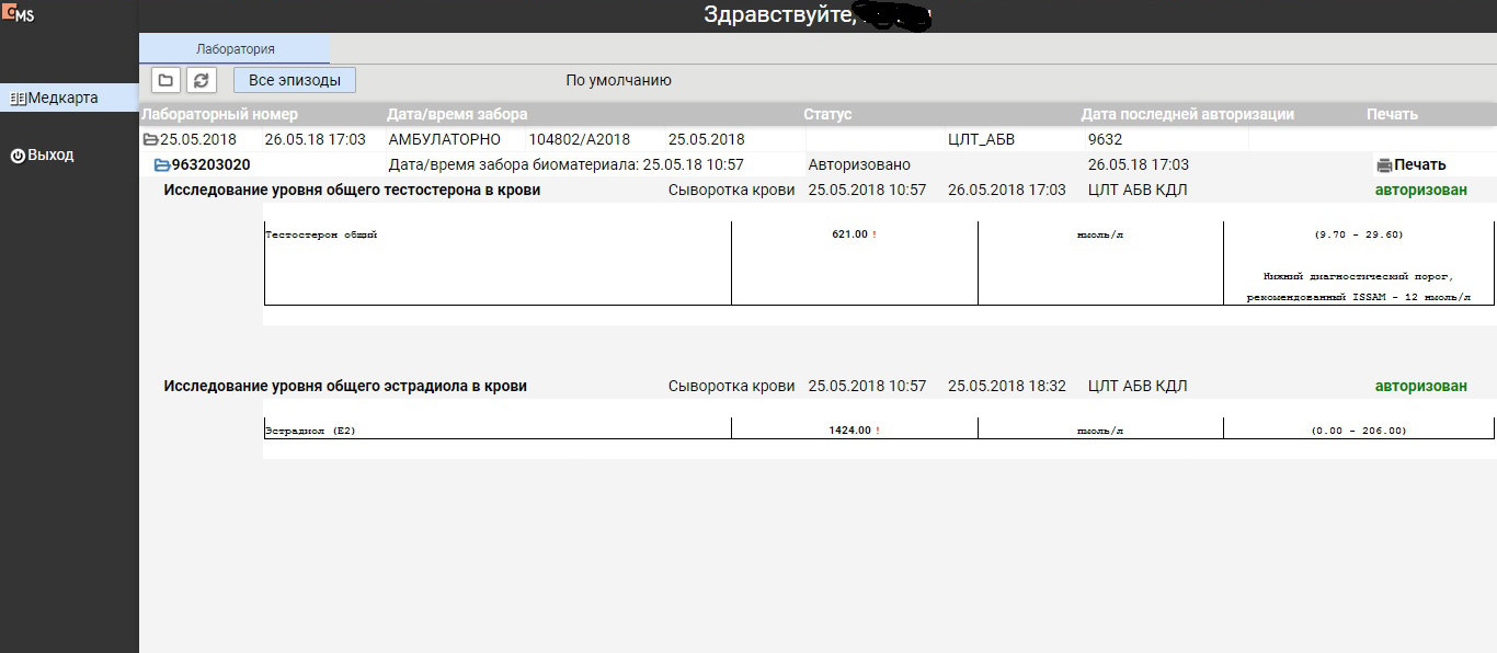 "Всем доброго дня! Получил результат анализа по тестостерону энантату от Magnus. Ставил более 3х недель, 500мг в неделю (2 укола по 250мг). Масло- этилолеат, оставляет небольшое уплотнение в месте инжекта на пару суток. Результат спустя 25 часов после укола.