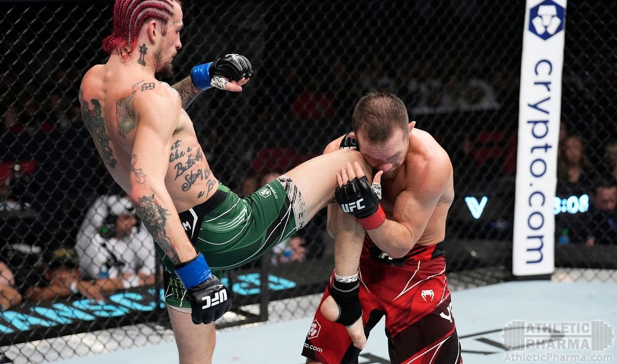 Второй по значимости поединок UFC 280 тоже был титульным и также завершился уверенной победой фаворита. Алджамэйн Стерлинг, действующий обладатель чемпионского пояса в легчайшем весе, за восемь с небольшим минут в октагоне “съел” Ти Джея Диллашоу и не подавился. Стерлинг был близок к досрочному финишу еще в стартовой пятиминутке, удерживая Ти Джея в партере и обрабатывая его корпус и голову своими кулаками и локтями. Но Диллашоу каким-то непостижимым образом пережил продолжительный граунд-энд-паунд.