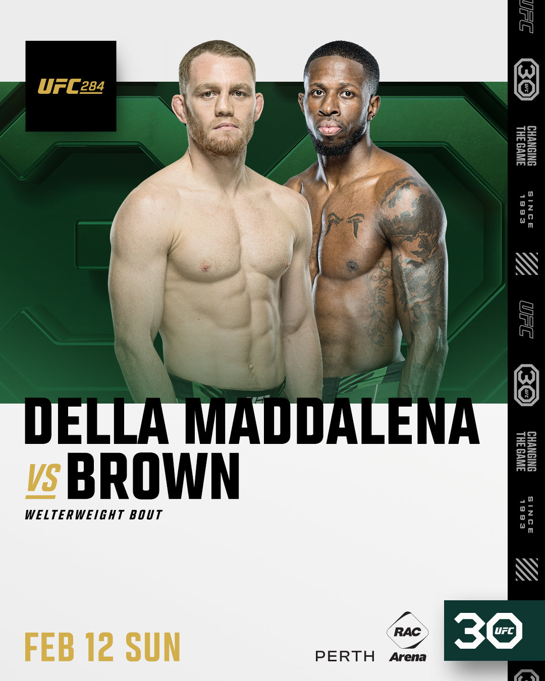 Через 3 дня, 11 февраля, в Перте (столица Западной Австралии) пройдет крупный турнир по смешанным единоборствам: UFC 284. Кард мероприятия будет состоять из 13 поединков – 5 в качестве основного карда, а остальные как предварительные и ранние предварительные поединки. Главным событием вечера станет битва за титул в легкой весовой категории между действующим чемпионом Исламом Махачевым (Россия) и претендентом Александром Волкановски (Австралия), одновременно обладателем чемпионского пояса в полулегком весе. По понятным причинам, ростер турнира будет преимущественно австралийским. Из тринадцати боев представители этого континента примут участие аж в десяти.