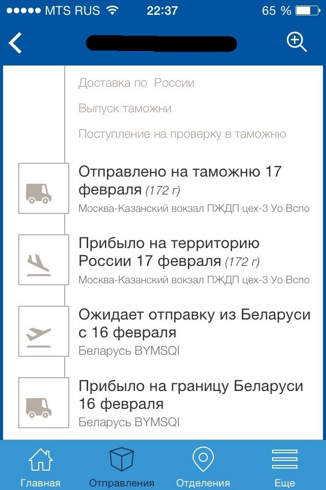 Дело то еще в том, что по Беларусии этот код показывает все правиль, по датам сходится, когда была отправлена :0365: