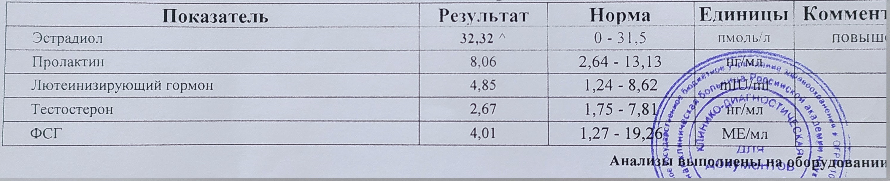 Свободный тестостерон 10,41 при норме 5,7 - 30,7 пг/мл