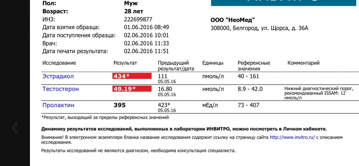 Идёт второй курс стан по 40 к/д +пропик по 100 ч/д. Середина курса, сдал анализы. Во вторник в 9 утра сделал укол , в 11 ч тренировка. На следующий день в 9 утра сдал анализы. Смущает завышенный эстро и не маленький ли показатель теста на второй день? Нужно подключать Анастазу, какие дозировки? 28 лет до курса вес 93 , сейчас 99. Соски периодически набухают и все, зуда и боли нет. Побочек вроде не чувствую. Но в начале курса кажется пруха сильнее была , чем сейчас