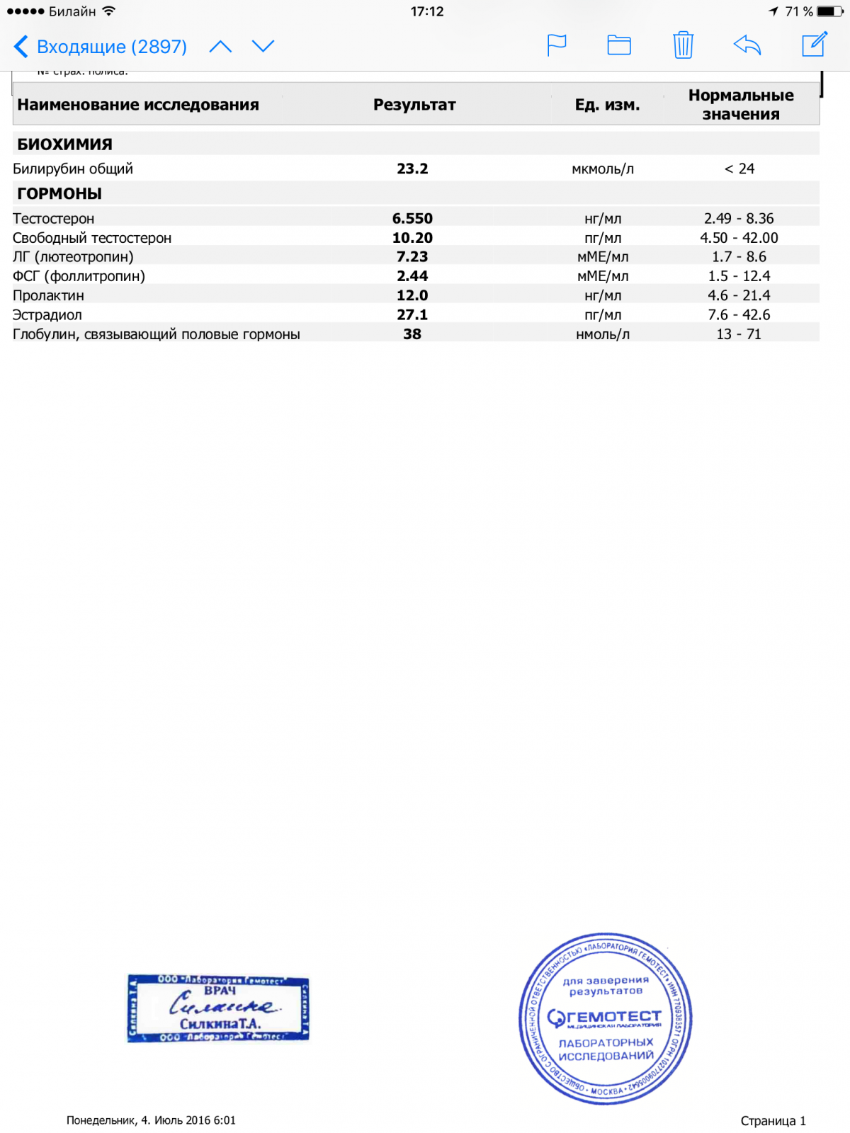 Добрый день. Курс начал 3 недели назад. Планирую 6 недель. Оксандролон по 60 мг ежедневно с первой недели, со второй недели добавил тестостерон пропионат 50 мг через день. В прикрепленных файлах анализы до курса (16.06) и через 2,5 недели (04.07). Что скажете? Вопросы: