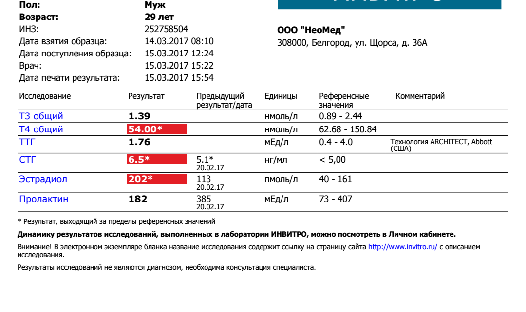 Спасибо, Джонни) . У меня эстро чуть выше минимума, тесто ниже минимума, зато пролактин завышен! Пару дней назад принял пол таблетки достинекса, всего планирую две. писали, что за счет снижения пролактина должен приподняться тест! Очень надеюсь на это. Чем можно ему помочь, кроме трибулюса?