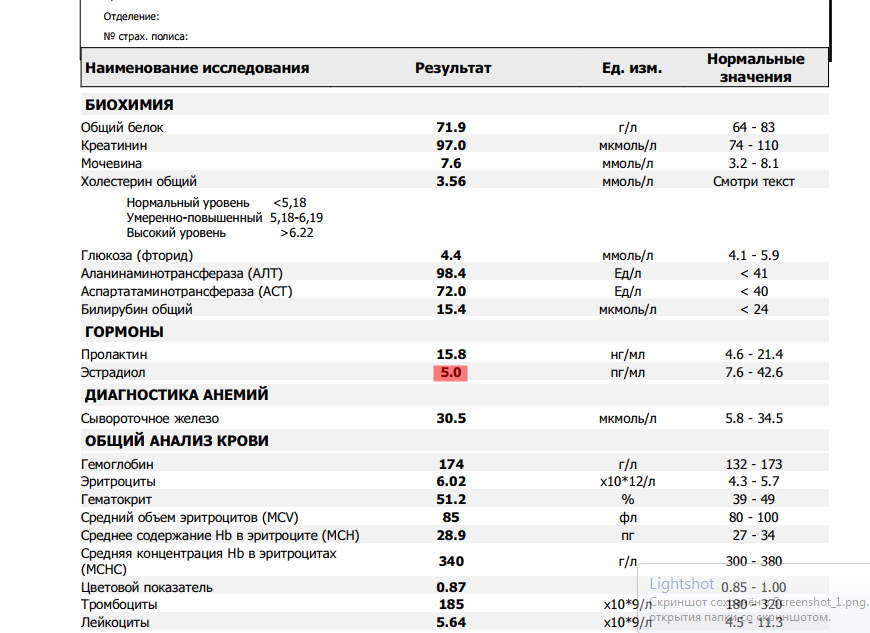 Здравствуйте, посмотрите анализы пожалуйста. Курс 250 сустанон, 400 примы а Нед., 40 мг/д Оксана