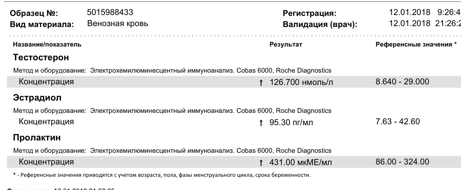 Сдал анализы. Пролактин высоковат. Думаю пару таблеток по половинке раз в  3 дня. Да и эстро можно потихоньку сбивать. Неделя осталась до конца курса, до моста. А то давление придавило до 160