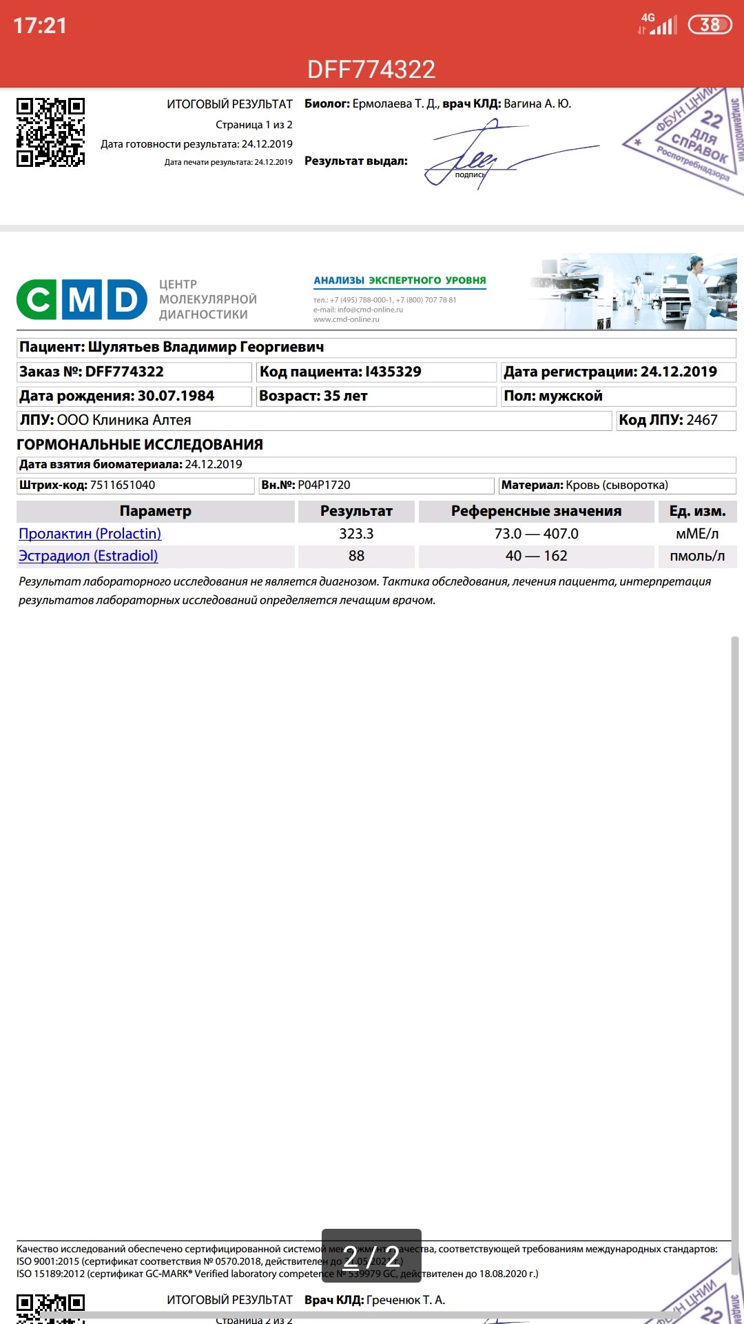 2. Если на курсе трен, то эстро должен быть в небесах. Либо лаба определяет реальный эстро, либо трен не трен. (Хотя все симптомы трена я прочувствовал: очень плохой сон, потливость вонючая, смена настроения, дикое либидо, спазмы, кашель и химический привкус во рту после укола, тёмная моча и т.д.)