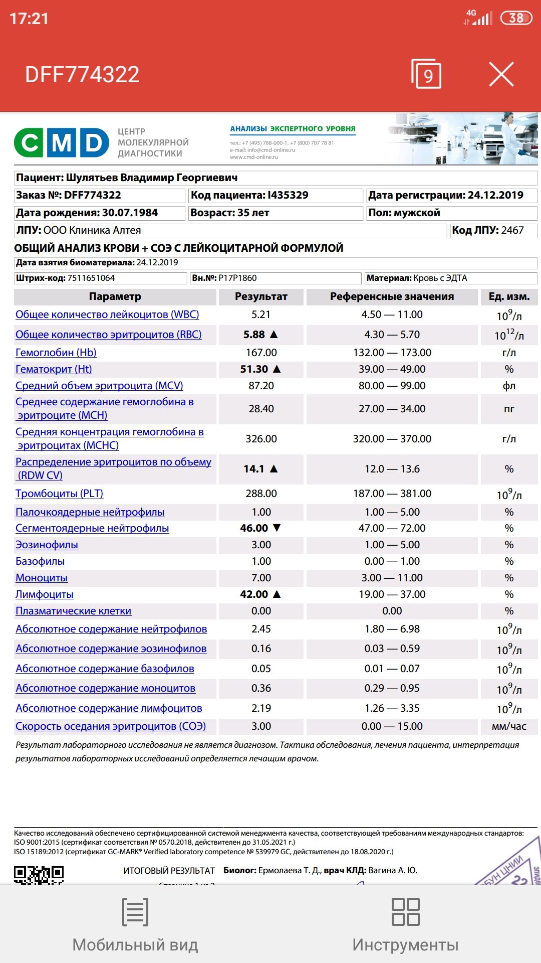 Гематокрит  не вижу???